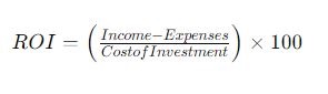 Calculating ROI in real estate properties involves taking into account both the income and expenses associated with the property. Here is the basic formula for calculating ROI: